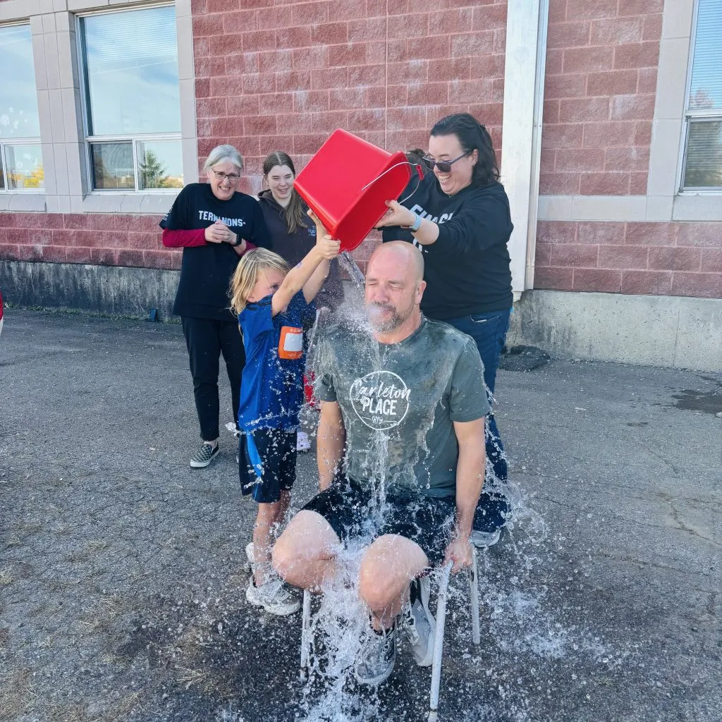 The school had promised that if the goal was surpassed, students could dunk or pie a teacher or local dignitary. Top fundraisers Shaye and Sullivan McNulty, who together brought in $1,600, were the first to step up, gleefully dunking UCDSB superintendent Casey Nelson and the mayor (see photo).