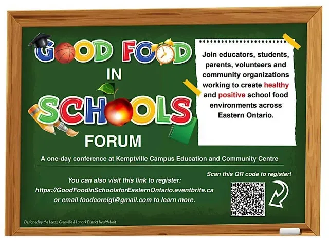 Partners across Leeds-Grenville and Lanark are collaborating to host the Good Food in Schools Forum at Kemptville Campus on April 11th. This one-day event will bring together stakeholders working on school food education and programs across Eastern Ontario, to share efforts to create healthy and positive school food environments.