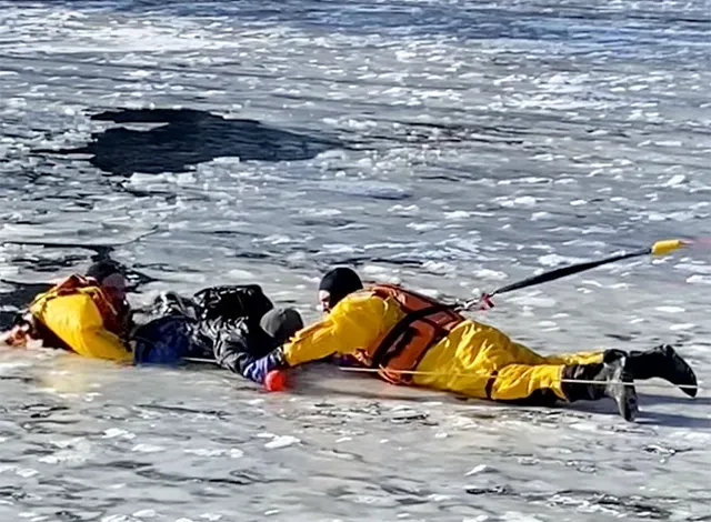 Police received a 9-1-1 call at 1:49 p.m. reporting that a young person had gone through the ice behind the Econo Lodge. Officers, firefighters and paramedics were dispatched to the scene.