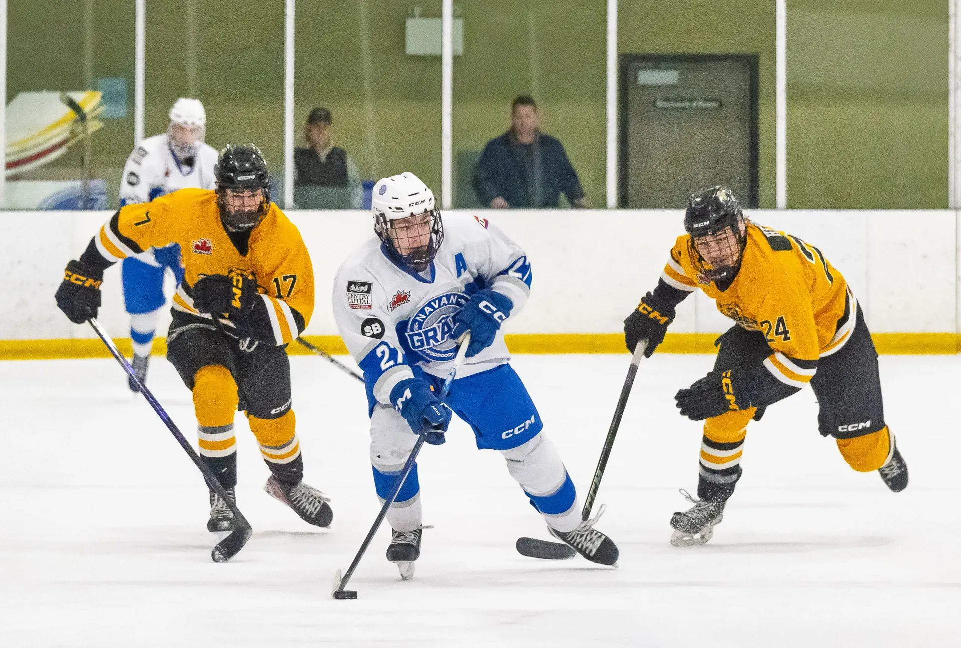 The Bears added an insurance goal in the third period when Gus Rabe scored at 1:57, assisted by Peyton Veltkamp and Jonathan Dudziak, bringing the final score to a 3–1 win for Smiths Falls.
