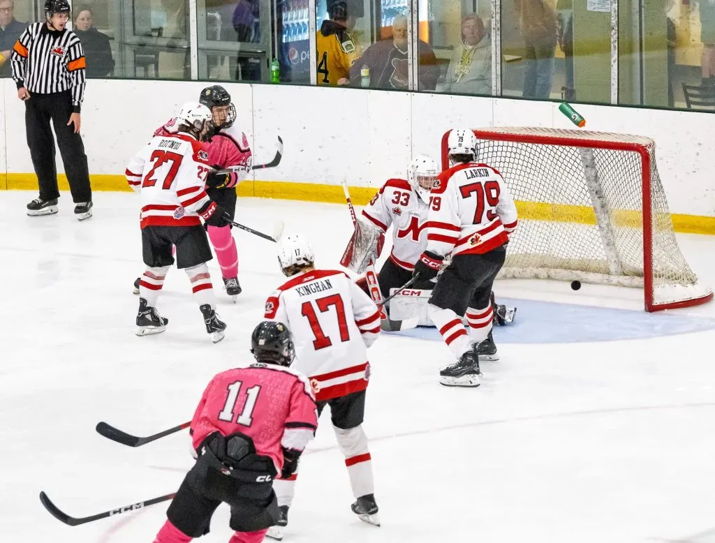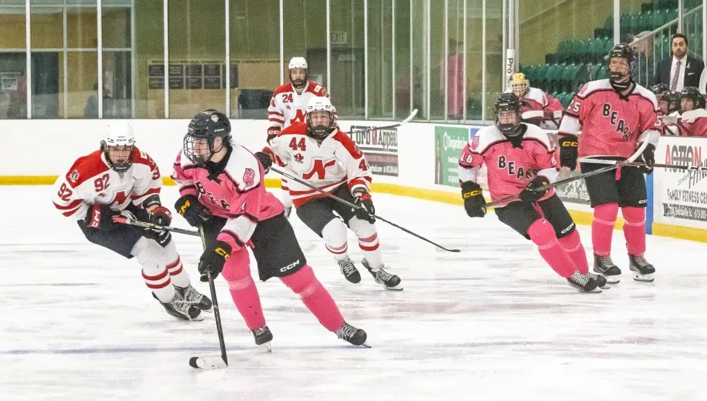 On Sunday, the Bears stormed out to an early lead and never looked back. Caeden Heins opened the scoring midway through the first period, with goals from Peyton Veltkamp, Carter Beauchesne, Lucas Cameron, Travis Ouellette, Jonathan Dudziak, and Andrea Blais rounding out the onslaught. Smiths Falls potted five unanswered goals in the second frame to put the game out of reach.