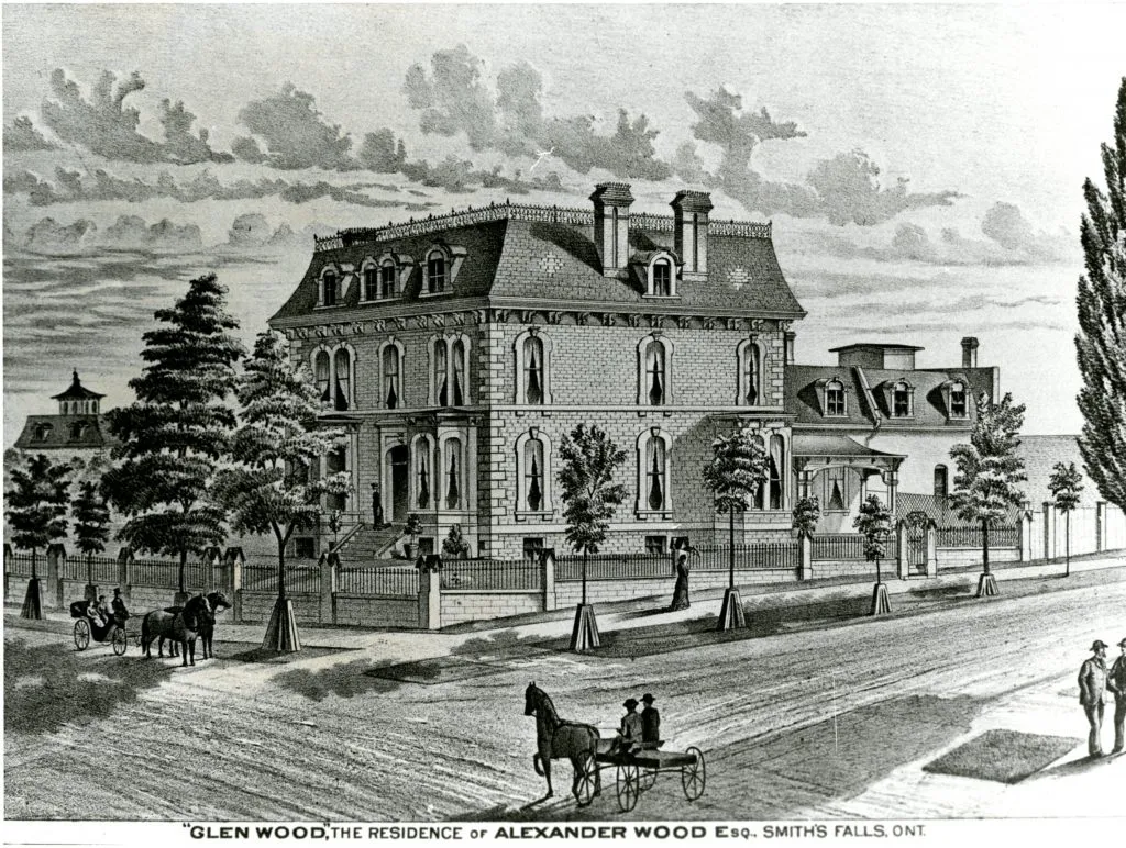 In 1846, Alexander Wood formed a partnership with Ebenezer Frost. For 116 years, Frost & Wood played a huge role in the history of Smiths Falls. They were one of the largest manufacturers of farm implements in Canada, and the largest employer in town. Their products were sold across the world. Wood acquired an abundance of real estate, including a grist mill complex on Wood Island which he purchased in 1880. Today, it is home to Parks Canada. In 1893, the Toronto Globe newspaper wrote that Alexander Wood was the most enterprising man in Smiths Falls. At that time, Wood had already retired as an active partner in the Frost & Wood Company.